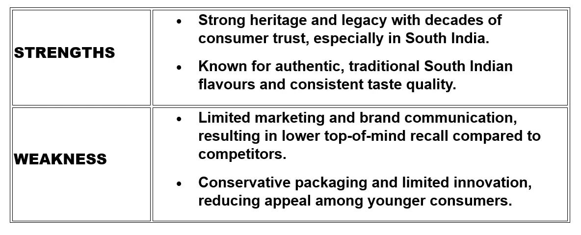 The brand has operated for decades and is perceived as a legacy, family-rooted brand in South India — an emotional and trust asset that converts into repeat household purchases. (Legacy coverage & brand story). - Large traditional product range centred on South Indian tastes