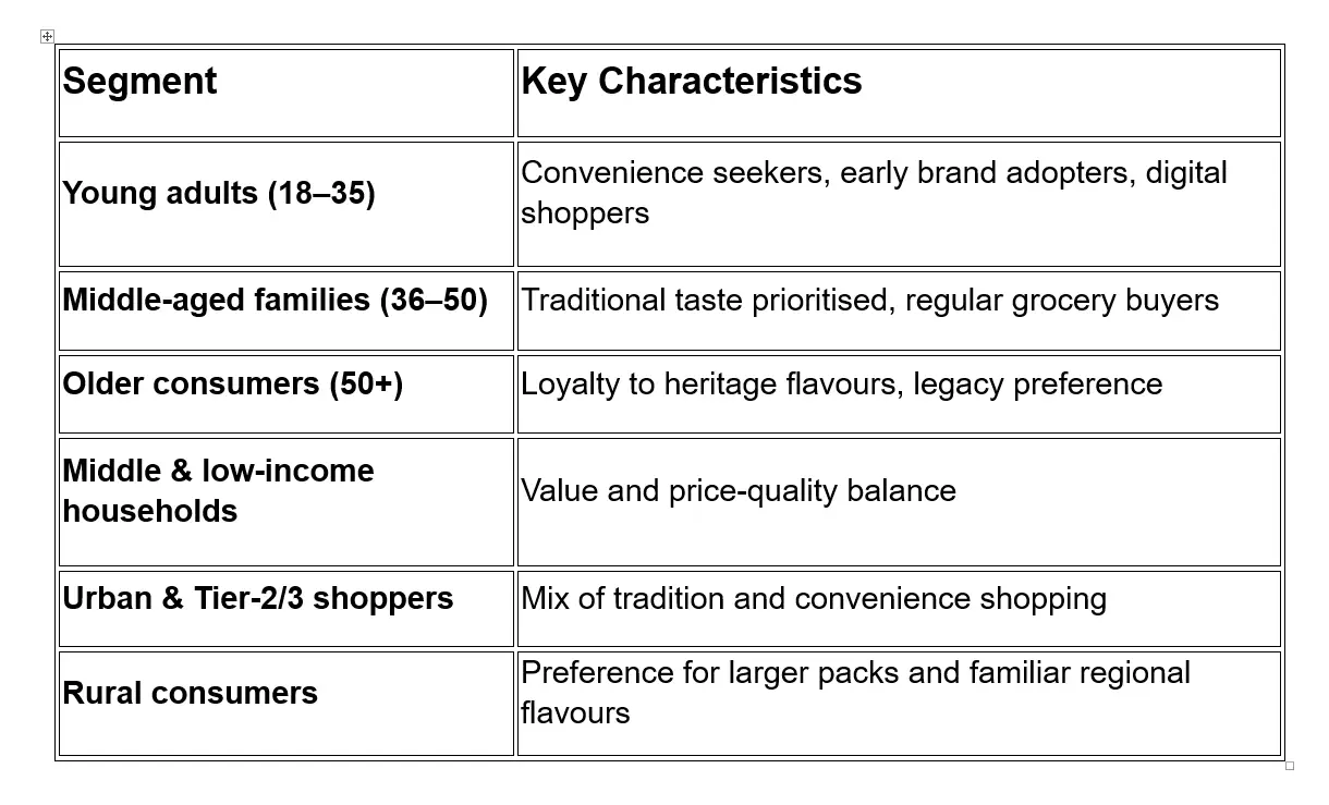 The target audience for SGR 777 Foods spans multiple demographic and psychographic segments — from traditional families valuing heritage flavours to younger consumers seeking convenience without losing authentic taste. This diversified audience base positions the brand to leverage both emotional and functional appeal across regions and shopping preferences, while highlighting the need for modern engagement strategies to increase reach beyond legacy markets.
